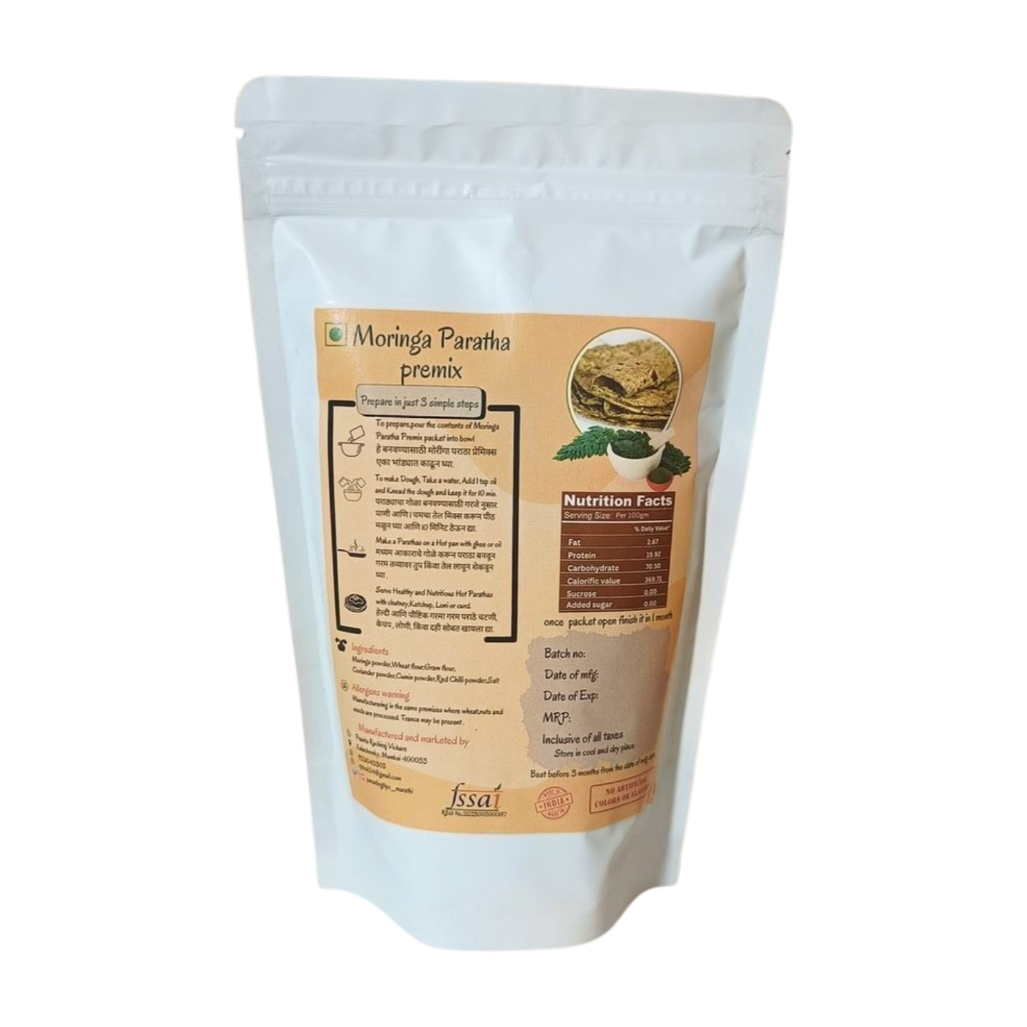 Not only do these parathas taste great, but they also pack a healthy punch. Moringa is known for its antioxidant properties, high vitamin content, and potential to support overall well-being. By choosing our Moringa Paratha Premix, you’re not just enjoying a flavorful meal—you’re giving your body the nourishment it deserves. Serve them with yogurt or your favorite dips for an extra health boost!